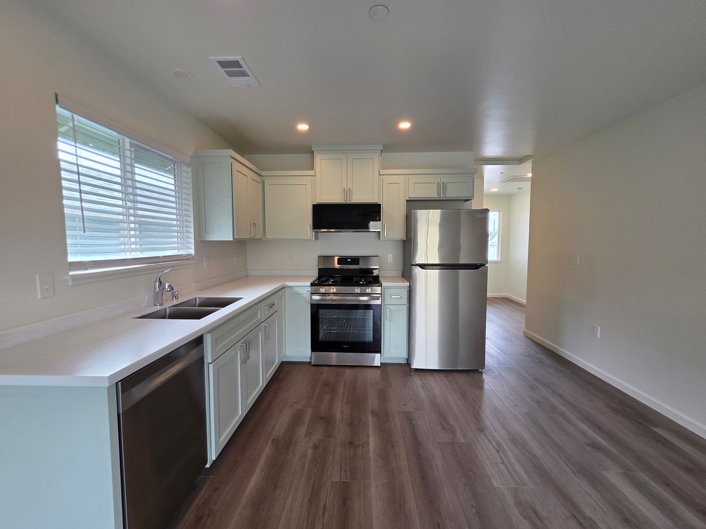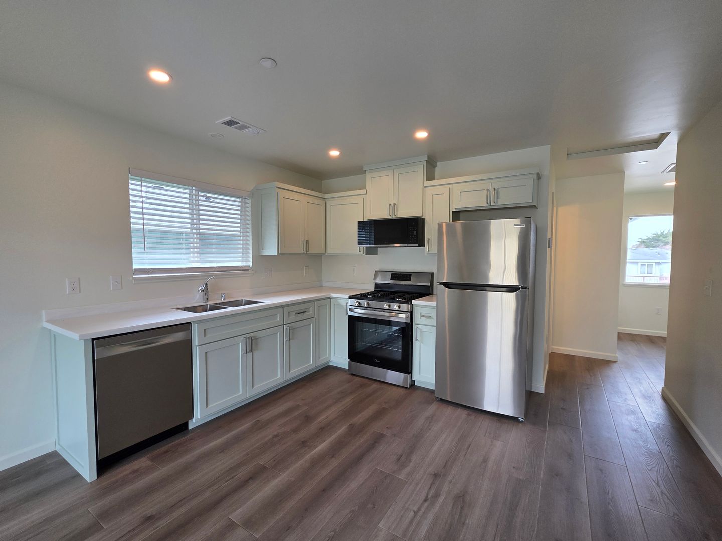 Brand New 2bd/2ba town house located on a dead end street. 1190 S/F living area with a 290 S/F attached single car garage. Washer/dryer hookups in the garage. Fully fenced backyard. Solar panels. EV ready. Vinyl planking throughout. The kitchen features stainless steel appliances - including a dishwasher and a microwave. Second story deck. Front landscaping by management. Tenant pays all other utilities.