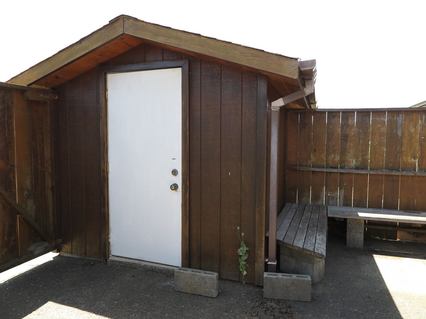 850 square feet on main floor, plus 100 square feet and 50 square feet lofts. The lofts have ladders and are meant for storage / hobbies. Courtyard has a nice storage shed.